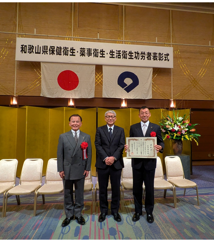 令和7年度保険衛生(医事)功労者知事表彰贈呈式 保健衛生に関する功績に対し、和歌山支部の岩田 泰宏 会員が令7年度知事表彰を受賞しました。 贈呈式は令和7年11月17日(月)ホテルアバローム紀の国「鳳凰の間」で執り行われました。